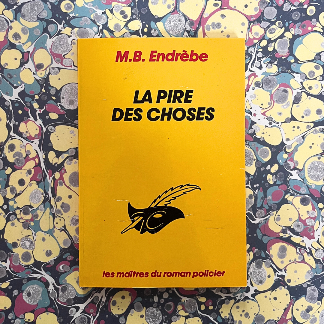 Il a été fabriqué dans la reliure recyclée d'un roman policier français : "La pire des choses" de M.B. Endrèbe.